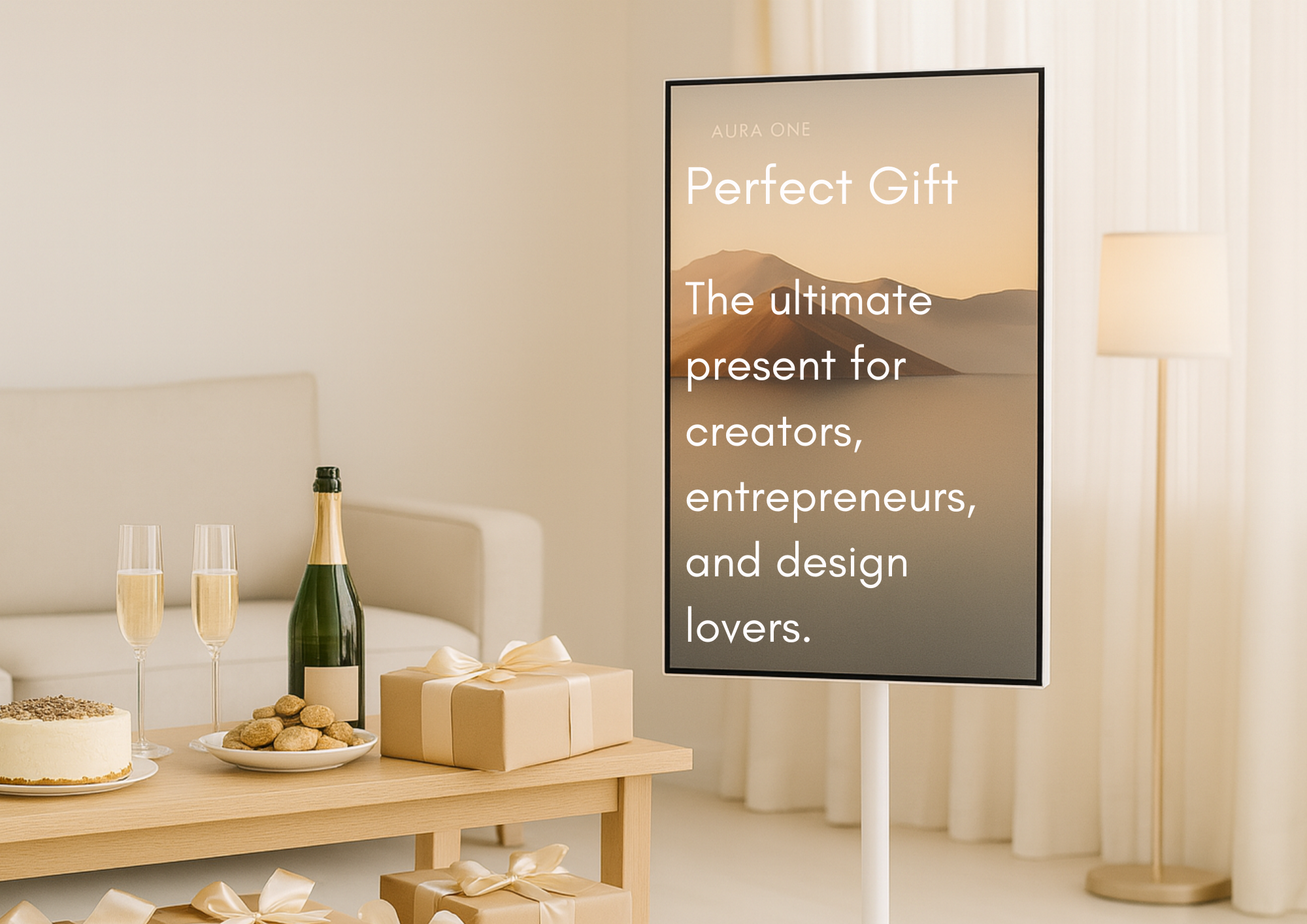Rotate and tilt freely. Horizontal or vertical, Aura One adapts to your space.